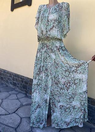 Длинное шифоновое платье, в передней части юбки разрез, по бокам карманы, на подкладке, в размер указан S,длина 140см, грудь до 90см, талия 68-70см,идеальном состоянии