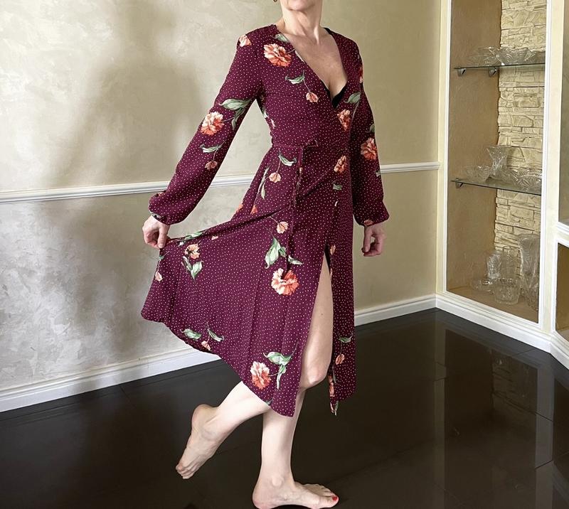 Primark нова стильна сукня на запах. Фото на моде з роз S., іде і на XS. Розмір з бірки 6/34. Довжина 108 см. Напів обхват грудей 38 см. Напів обхват талії 30 см. Рукав 59 см. Плечі 38 см. Поліестер.