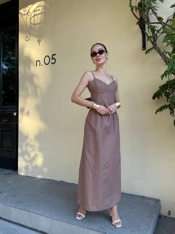 Сукня з великим бантом позаду з натурального льону Ціна - 800 грн ➡️Мод. 1791 ➡️Розмір: 42-46 ➡️Тканина: льон (Туреччина) ➡️Колір: темн беж, чорний, молочний.бест