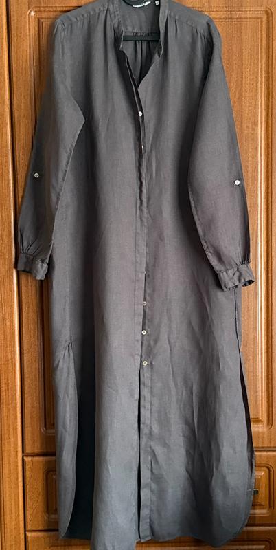 Розкішна сукня сорочка в максі/міді довжині в залежності від зросту з мега якісного 100% льону від люкс бренду Caliban Розмір 44 Плечі 37 Пог 53 Поб 55 Довжина 133 Рукав 61,можна застібати на коротший По боках напівкруглі розпорки Зі слідів носіння лише втрачено пояс,одягала без нього Одягалося кілька разів,стан ідеал Розумний торг виключно при повній оплаті на карту,при оформленні через шафу,БУДЬ ЛАСКА,уточнюйте всі деталі і заміри Відправка щодня новою поштою