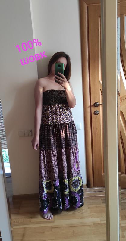 Легка літня сукня в стилі бохо. На 100% виконана з натурального шовку. Стан нової. Італійське виробництво. Довжина 118 см ПОГ 37 см тягнеться резинка до 47 см