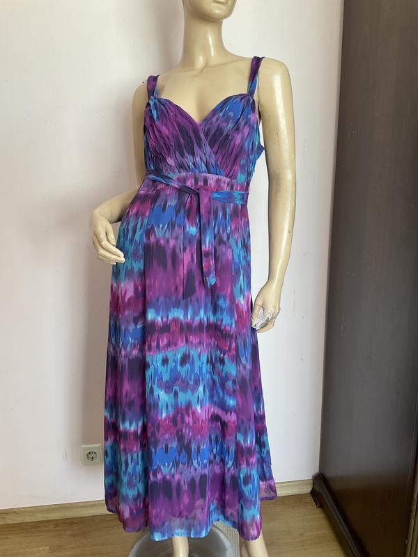 Жоржет на підкладці. Замок в боковому шві. Кокетка під грудьми , завязуеться . Заміри в грудях 48 см в талії 42см в бедрах 56 см довжина 126 см 30:7:25