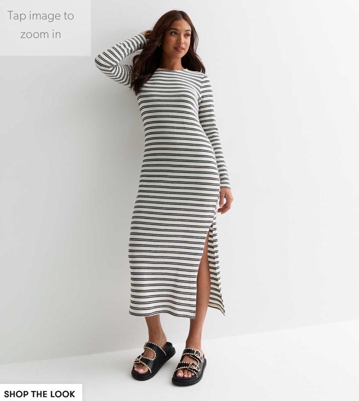 Мініатюрна. Виконана в монохромному кольоровому виконанні з позачасовими смужками, ця біла сукня міді – це те, за чим ви будете шукати знову і знову. - Смужковий принт - Круглий виріз горловини - Довгі рукави - Розрізний поділ - Довжина міді - Приталений крій - Приємна до тіла/гарно тягнеться 70% бавовна, 20% поліестер, 10% віскоза. Можна прати в пральній машині.