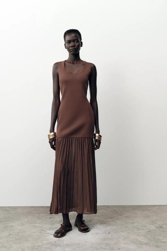 Сукня з круглим вирізом горловини та без рукавів. Низ із тканини в тон. СВІТЛО-КОРИЧНЕВИЙ | 4192/153/730