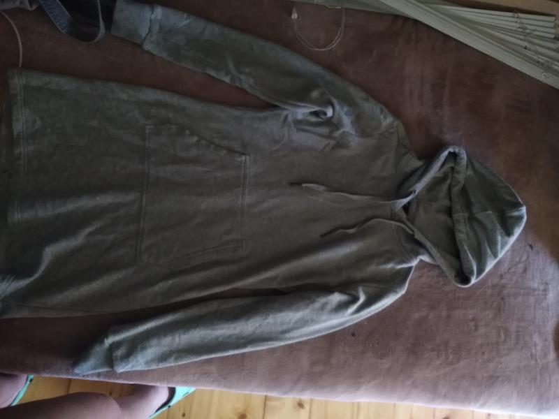 Длина платья 79 см, длина рукава 61 см, с карманчиком, с капишонов, без узоров.