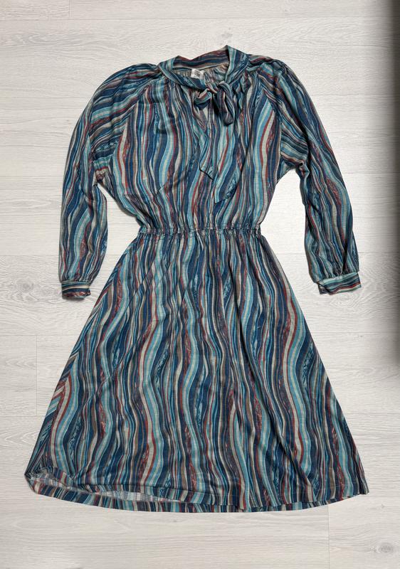 Стан вживаний, є маленькі дірочки на спідниці від тривалого зберігання, дивіться фото, за рахунок крою їх не буде видно при носінні, якщо зашити Тканина тоненька, трохи просвічується Розмір зазначено 48 Довжина 113 Ширина від пахви до пахви 56 Ширина у талії 32, тягнеться до 47 Ширина у стегнах до 68 Рукав від горловини 67