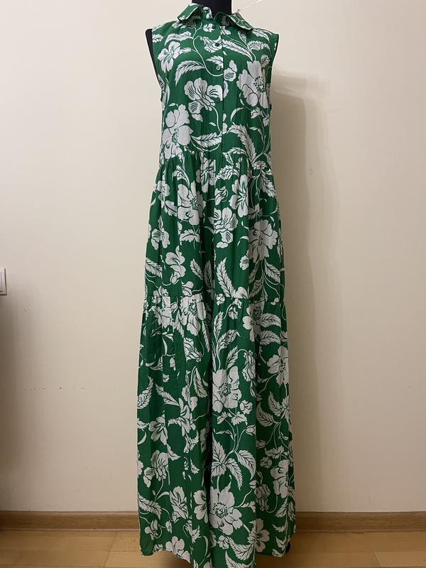 Жіноча довга сукня з котону 8/36 розміру. Плечі 34 см, ПОГ 45 см, ПОТ 45 см, ПОС 74 см, довжина до талії 40 см, загальна довжина 138 см. Нова, з біркою, без дефектів. Люкс секонд - хенд. Має запах обробки. Перед вживанням треба прати.