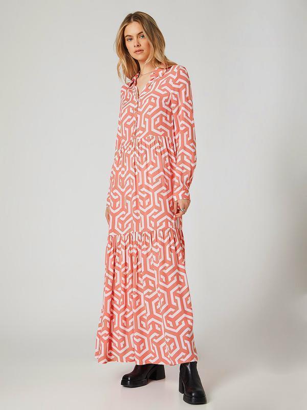Платье розовое белое принт макси