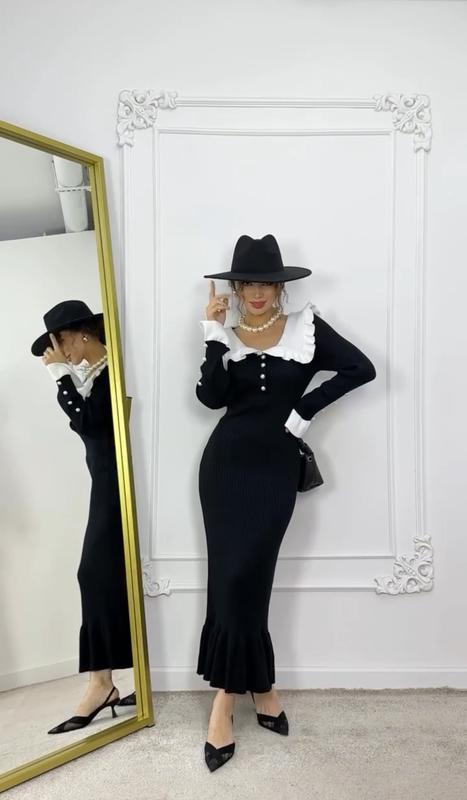 Сукня 🍁 Мод. 1147 Тканина : Ангора рубчик + котон Розміри : 42-44 , 46-48 Колір : чорний Ціна : 1100грн