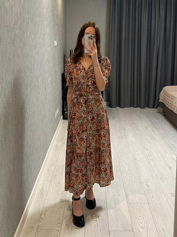 Дуже гарна суня з дефектами, зверніть увагу на фото. Тканина дуже приємна до тіла, не тягнеться. Розмір L Мій розмір XXS, ріст 160. Так як сукня має пояс, то підходить і на менші розміри.