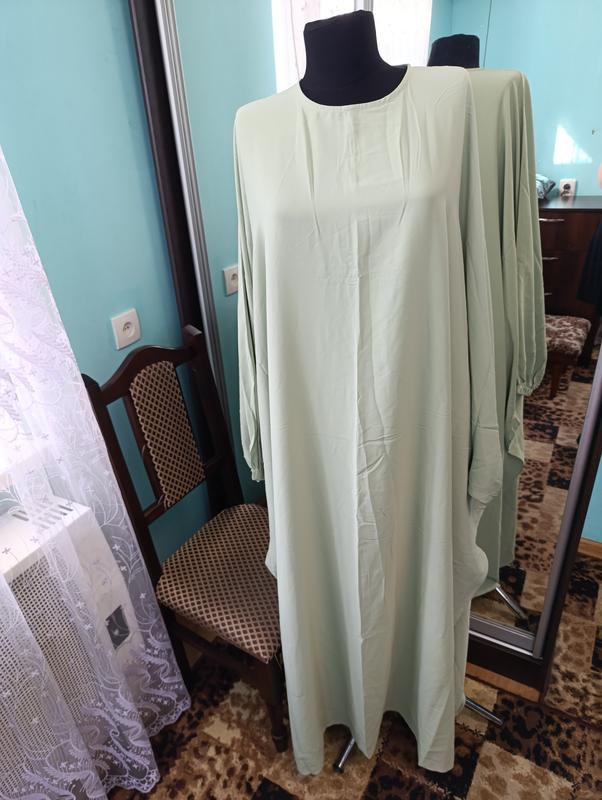 об'єм грудей половина 112 бедр половина 104 довжина 134 рукав від шиї 75 має бути вільна