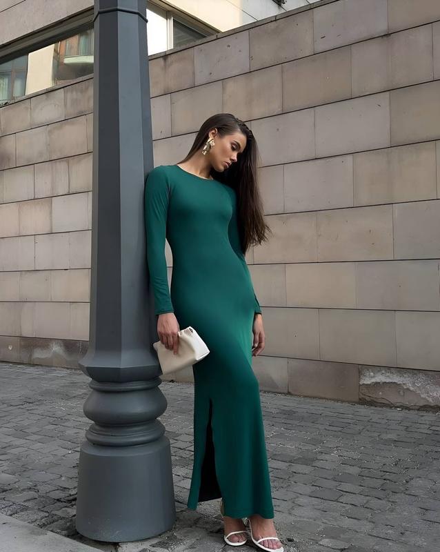 Класична жіноча довга сукня-гольф з мікродайвінгу обтягуюча з довгим рукавом