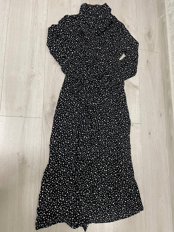 Сукня чорного кольору в горошок, ідеально сідає по фігурі, підійде від розміру ХС до не великої М. Довжина максі.