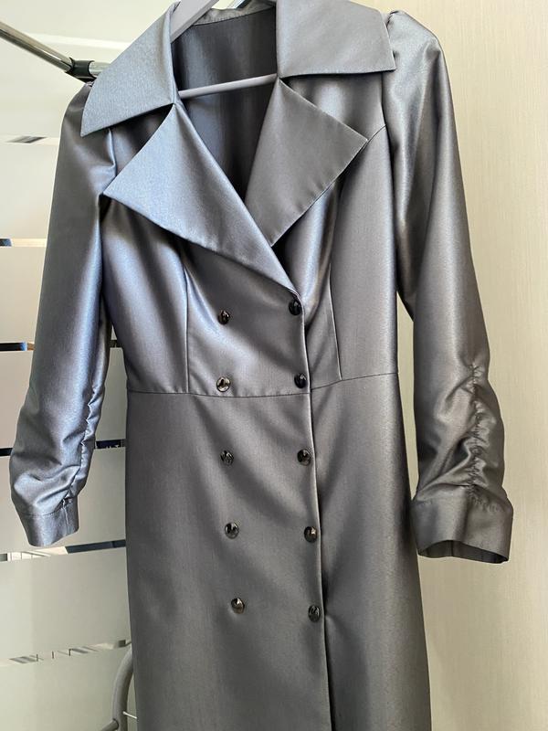 Металізована сукня-плащ з віскози з широким коміром і двобортною застібками, рукави з драпіруванням