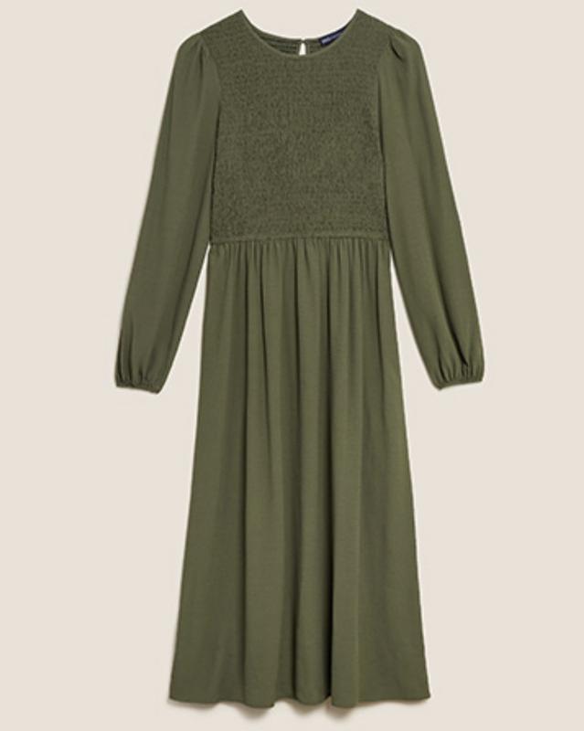 Довга сукня m&s, з жаткою, неймовірно сидить на фігурі м/l, колір хакі