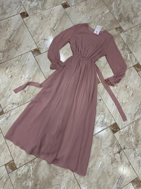 Абсолютно нова жіноча довга шифонова сукні Виробництво Туреччина В наявності також в інших кольорах та розмірах В наявності кольори сірий, пудра, темно синій Розміри ХС, С, М, Л Матеріал шифон, сукня повністю на підкладі , окрім напівпрозорих рукавів Талія на резинці, також в комплекті пояс Замір ХС ПОГ 42-47 см Плечі 36 см Рукав 60 см Довжина 142 см Довжина від поясу 103 см ПОТ 23 см, тягнеться до 44 за рахунок резинки