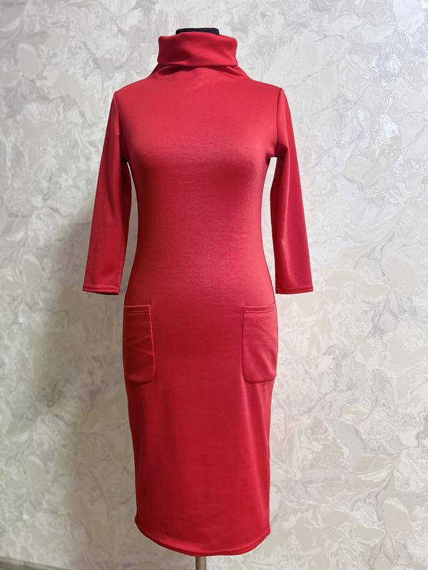Нова жіноча сукня розмір 42-44. Є кишені. Тканина трикотаж + еластан. Рукав 3/4 Заміри- ПОГ 42см Напів обхват талії 38см Напів обхват стегон 43см (гарно тягнеться) Довжина 96сс