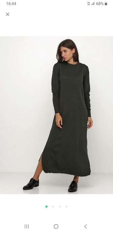 Сукня-максі прямого силуету, внизу по Бойкам з двома розрізати, можна вважати що нова (не носилась, але без бірки) Заміри в неростянутому вигляді: довжина - 134 см, плечі - 47 см, ПОГ - 53 см, довжина рукавів від горловини- 71 см., мягко, приємна до тіла.