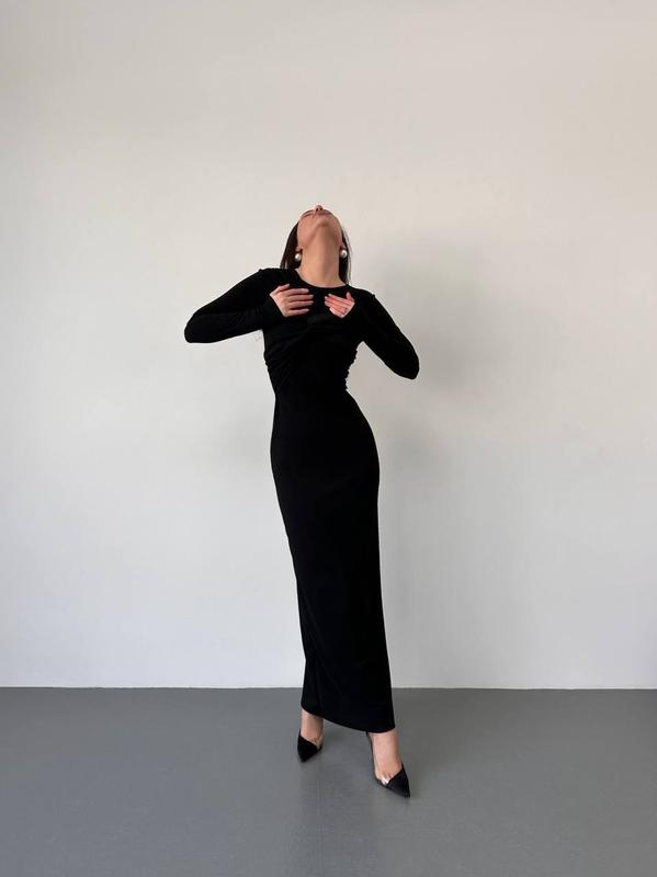 Сукня🥰 Мод: 0243 Тканина: крепдайвінг Розмір: 42-44, 44-46 Колір: чорний Ціна- 759 грн🔥