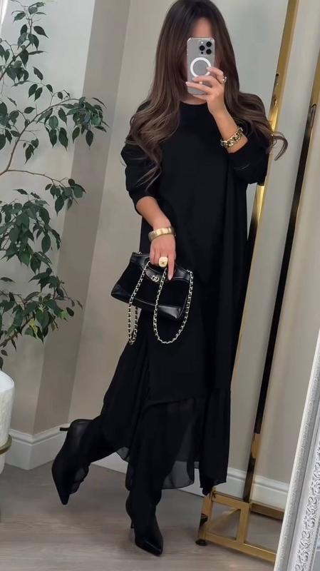 Сукня Модель : 228 Розміри : 50-52 , 54-56 , 58-62 Тканина : креп дайвинг+ креп шифон Кольори : чорний,шоколад Елегантна сукня прямого крою - ідеально сідає по фігурі, витягує силует та додає витонченості 💎 Низ оздоблений воланами з креп-шифону, які додають образу легкості та м’якості 🌙 Легка хода, ефектний вигляд і максимальний комфорт гарантовані! Ідеально для свят, вечерь, подій та стильних буднів.. Виміри: 50-52 / 54-56 / 58-62 ОГ 128 / 140 / 152см ОС 126 / 138 / 150 мм Довжина рукава від горла : 73 / 74 / 75 см Довжина : 118 / 119 / 120 см