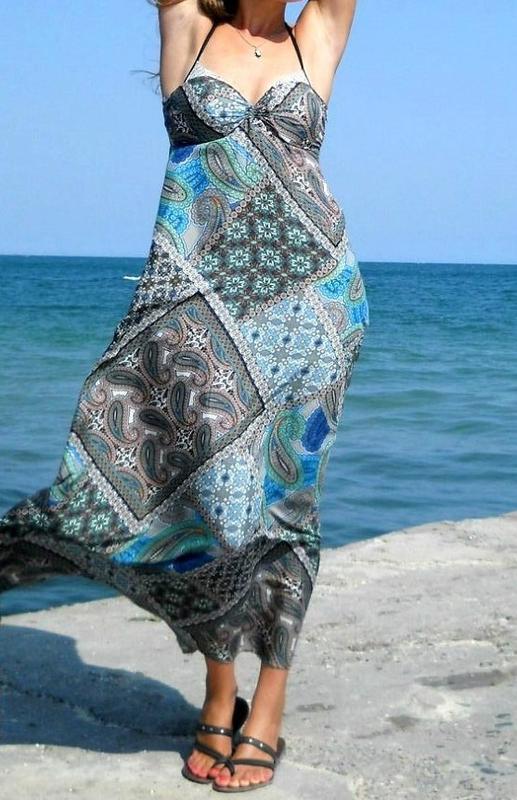 Легкий летний сарафан в пол, с натуральной ткани. На бретельках, красивая морская расцветка.