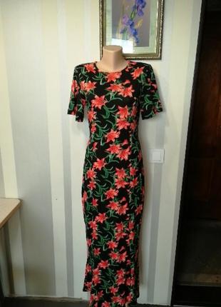 Довге віскозне сукню з оголене спиною, розмір 40(12)
