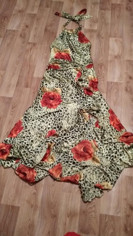 Сукня зі шлейфом. Тканина приємна до тіла. Застібка - блискавка + зав'язується на шиї.