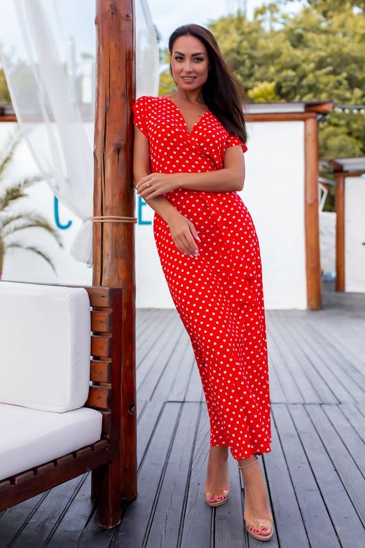 💥💥💥НОВИНКА💥💥💥 Модель:1135 Розміри:50,52,54,56 Тканина:євро софт Кольори в асортименті. Дрібний горох Сукню на запах, врізні кишені. Ціна:460 грн