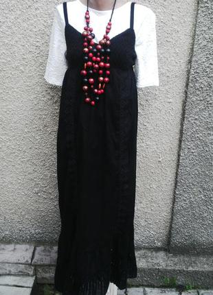 Этно сарафан(платье)в пол с воланом по низу, кружевом по груди, вышивкой в тон,хлопок 100%