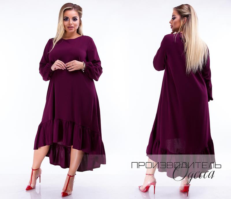 Сукня вільного, асиметричного фасону «каскад» З воланом внизу вироби. Рукав довгий на резинці. Тканина: креп-сафарі Розмір: 48-50 (універсал) одягнене один раз
