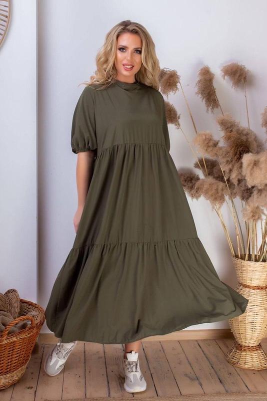 💛НОВИНКА💛 Платье НОРМА+БАТАЛ Номер: 1987 Цена: 490 грн Ткань: софт (лёгкая и прохладная) Цвет: хаки, терракот, чёрный Размер: 42-46, 48-50, 52-54, 56-58 Примечание: платье с воланами, широкого и свободного кроя, на спинке завязывается на бантик.