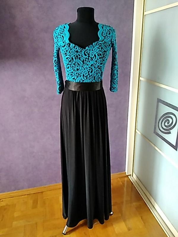 плаття святкове, одіте один раз, четвертний рукав, верх ажурний з голубими блискітками спереді підкладка бант атлас