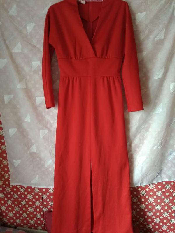 Стильне плаття в підлогу,з довгим рукавом,спереду на запах ;з розрізом ; ззаду на блискавці.