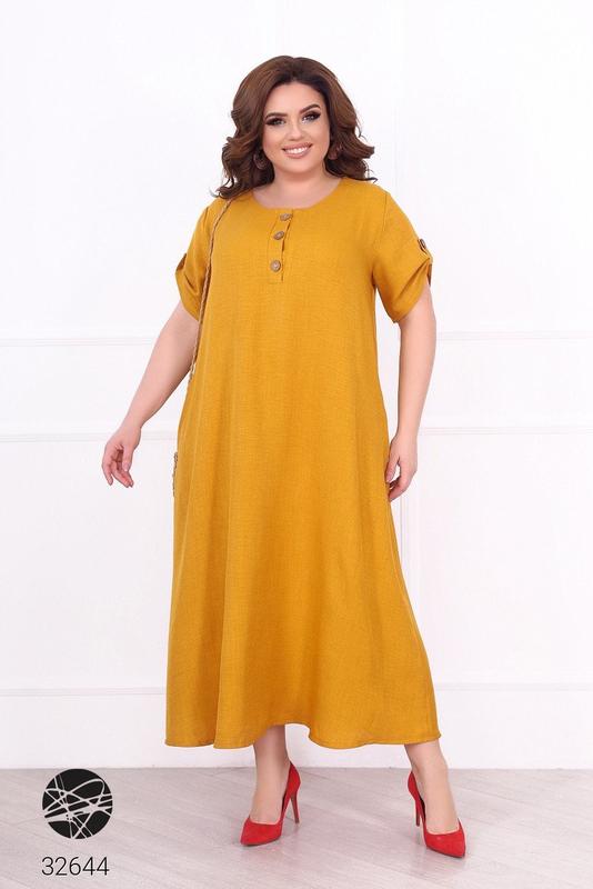 Платье свободного кроя из качественного материала. Овальный вырез, рукава с хлястиками на пуговице, боковые прорезные карманы, планка на пуговицах.