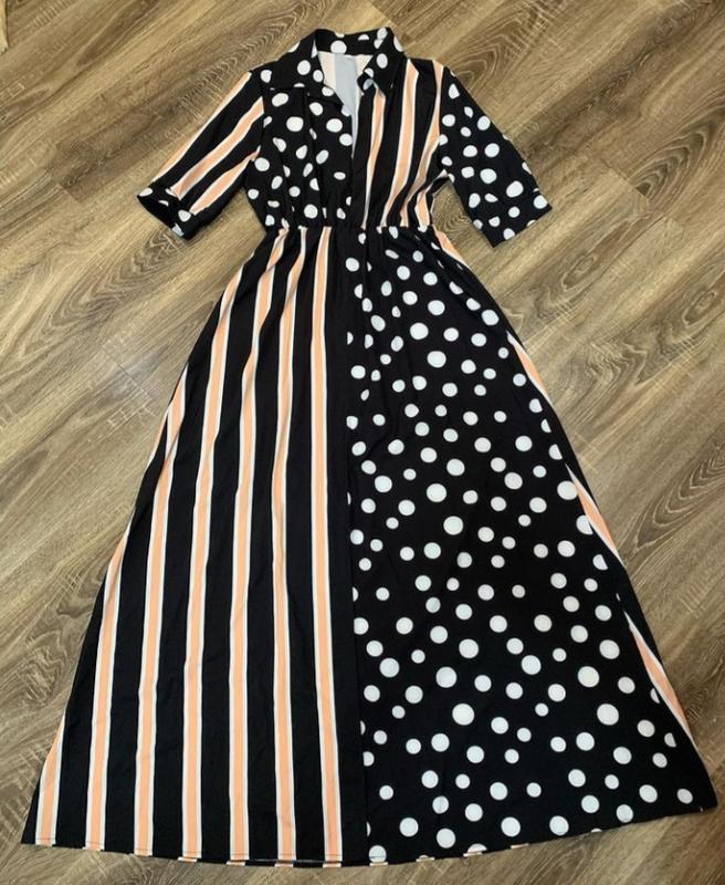 Шикарне легеньке довге ,чорне плаття в горох та смужку.Виглядає чуже стильно.