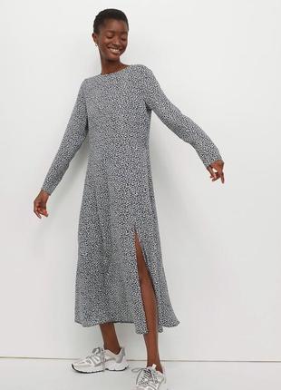 Матерчатое платье длиной до икр с круглым вырезом горловины и глубоким вырезом сзади с узкими завязками на спине и на шее. Длинный рукав, облегающие манжеты с небольшим разрезом и обтянутой пуговицей, отрезная талия и юбка клеш с разрезом спереди. Без подкладки. Размер 38 Цена 1250грн Замеры Плечи 38 ПОГ 48 ПОТ 43 Бёдра идут свободные 55-60 примерно Рукав 59 Длина от плеча 125