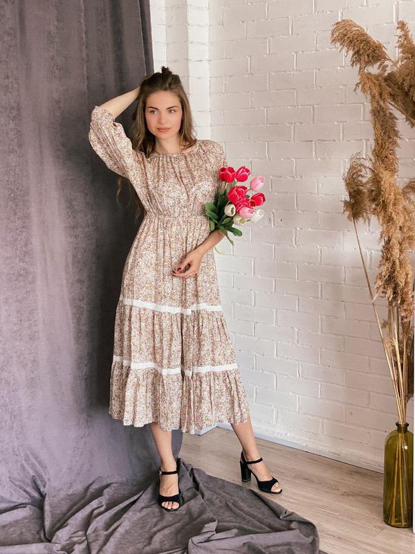 👗 Платье Арина. Необыкновенно красивое, солнечное, лёгкое, воздушное. Тонкий, нежный штапель очень приятен для кожи. Платье пышное, много ткани😍😍😍. В нем вы будете чувствовать себя прекрасной и женственной. Горловина и талия на резинке. Можно носить с открытыми плечами. Подходит для беременных 🤰, для кормления🤱.. Объемный рукав 3/4, внизу прострочен тонкими резиночками. Арт. 31385 Размер 42-46 универсальный Ткань: тонкий штапель Состав: 95% хлопок, 5% лайкра