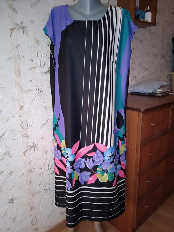 Размер на этикетке 48, смотрите замеры. Состояние отличное, без дефектов. Ткань тонкая, практически не тянется, 100% полиэстер. Есть боковые карманы. Длина от верхней точки плеча к низу 118. п/о выреза для руки 26 тянется до 30. п/о груди 63. п/о талии 61. п/о бедер 64. 36.