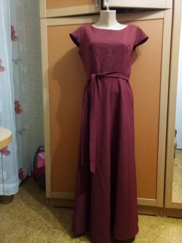 розмір 48, важкий шовк, колір марсала, заміри: плечі 39, груди 47-48,талия41,стегна 65-йде до низу клеша , довжина сукні 131, довжина від талії 93, з боку змеечка, праворуч на ніжці розріз, шила на весілля. сукня бомба