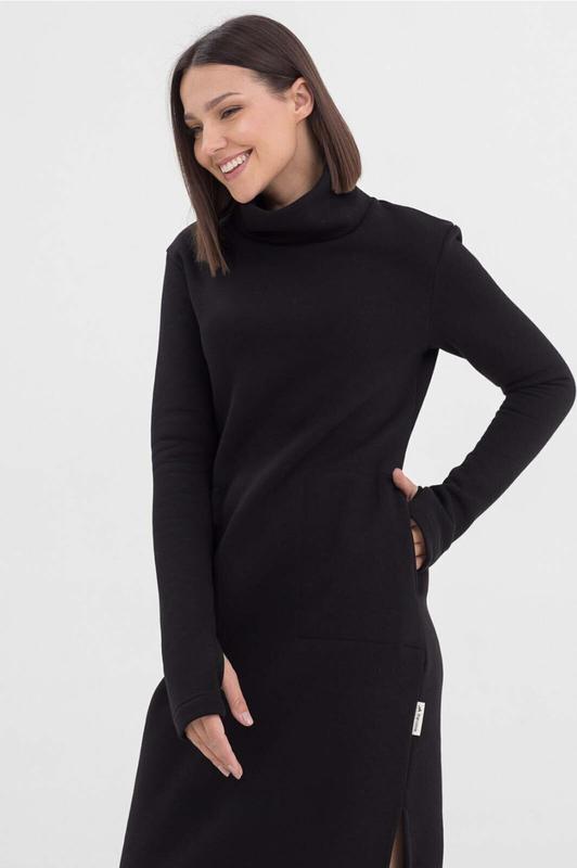 Новое с биркой Состав: 70% хлопок 30% полиэстер Плотность: 320 Цвет: черный Фактура материала: Плотный трикотаж с начесом Без подкладки: Без подкладки Размер на модели: XS, рост модели 171 см Женское платье Antera – модель длины миди с начесом. Состоит из 70% хлопка. Материал мягкий, его приятно трогать и ощущать на теле. Платье прямого кроя. Посадка комфортная, швы никуда не врезаются. Теплое платье можно смело надевать в офис, в ресторан, на прогулку с любимым мужчиной в прохладное время года. Высокий ворот предотвращает попадание влаги и укрывает шею от ветра. Длинные рукава с разрезом для пальца защищают от холода. На бедрах вшиты два кармана, куда поместится телефон, кошелек, наушники или другие необходимые предметы. Разрез сбоку платья добавляет образу элегантности и обеспечивает удобство при ходьбе. Женское платье Antera сочетается с плащами, пальто, кожаными куртками. К нему подойдет обувь на невысоком каблуке. Дополните образ, добавив к заказу эко-сумку для покупок. Особенности модели: — платье с начесом; — длина миди; — высокий ворот; — прорези на рукавах для пальца; — вырез сбоку; — два кармана на бедрах. Дизайнерские элементы: фирменный шильдик CAVE Длина рукава: 67,5 см Длина по спинке: 120 см