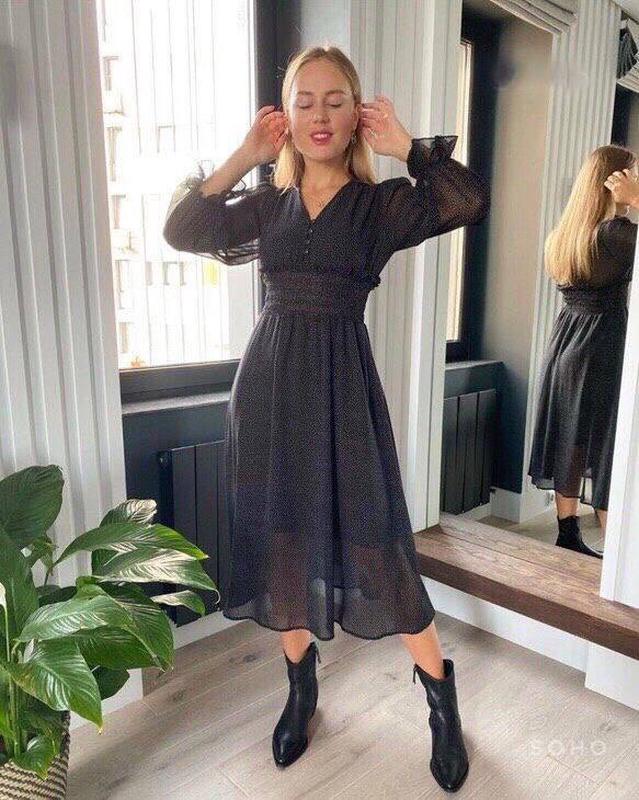 Крутейшие шифоновые платья🖤 Мод 143🔺фабричный Китай ⠀ ▪️ткань: шифон на подкладе, на спинке змейка, на талии резинка, пуговки рабочие ▪️размер: универсальный 42-44 ▪️цвет: чёрный, белый ▪️длина: 106 см, рукав 58 см, Пот 36 ⠀ 🛒ОТПРАВКА заказа 1-2 раб. дня! ⠀ 540 грн ⠀ Ж