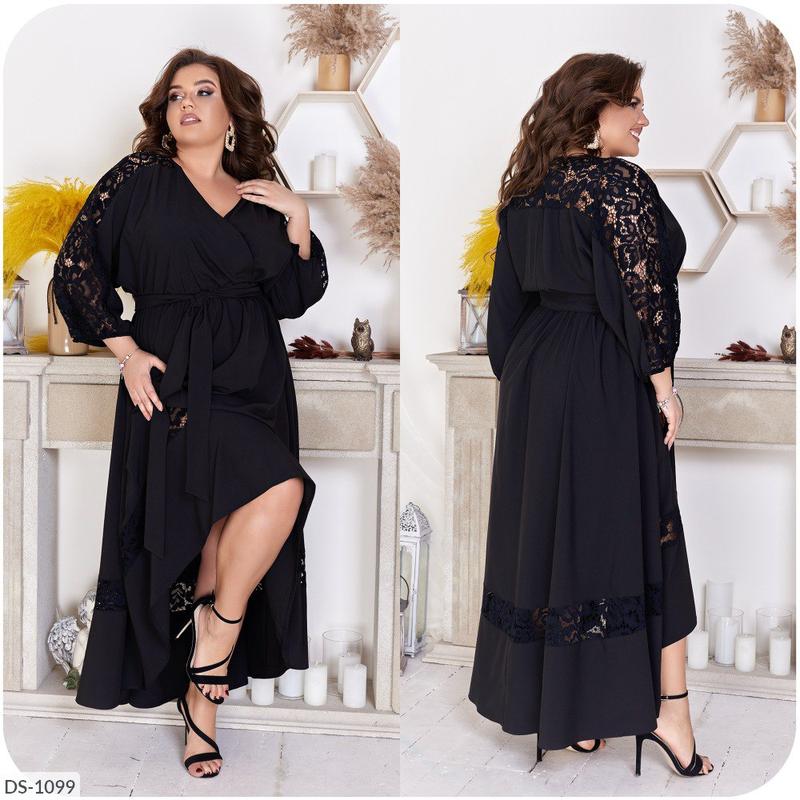 ‼️ Внимание оплата на карту‼️ Платье DS-1097 Цена 890 грн. Размеры: 48-50, 52-54, 56-58, 60-62 Цвет: черный, т синий, красный Ткань: софт+гипюр Длина 122/138 см Длина рукава от горловины: 57 см. Обхват рукава 50 см Замеры готового изделия: 48-50 ог 100 от 84 об 184 52-54 ог 108 от 92 об 192 56-58 ог 116 от 100 об 200 60-62 ог 124 от 108 об 200 Невероятно красивое женственное платье со вставками гипюра. Верх платья с эффектом запаха, по талии собрано на резинку. Низ асимметричный - спереди короче, сзади длиннее. Рукав 3/4, цельнокроеный, собран на резинку. В комплекте пояс из основной ткани. Дани Смотрите также другие мои объявления