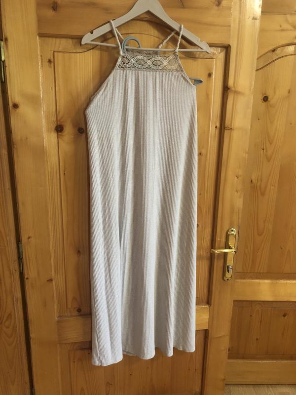 Вільне плаття В’язаний верх крючком Дуже гарне і ніжне Тканина приємна до тіла Довжина 127 з брительками Без 116 ПОГ 46 тягнеться до 52 ПОТ 56 також тягнеться Можливий торг