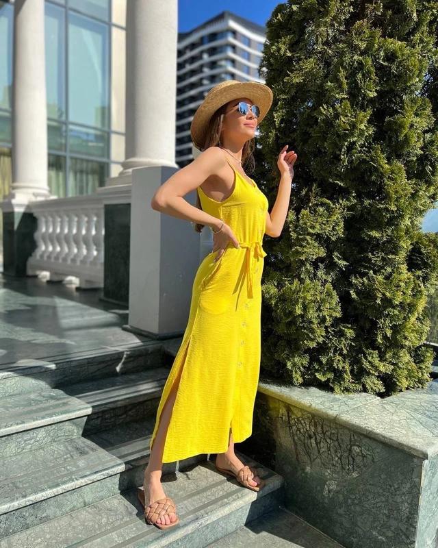 Сарафан Мод.105АС Тканина: креп жатка ▪️Розміри:42-44,44-46 ▪️Кольори: жовтий,білий,блакитний