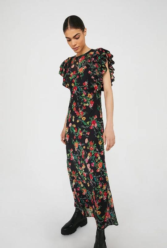 Максі-плаття в квітковий принт Warehouse р. 12/L/40 з рюшами на плечах. Сукня маломірить, підійде на розмір 10/М/38. З-2