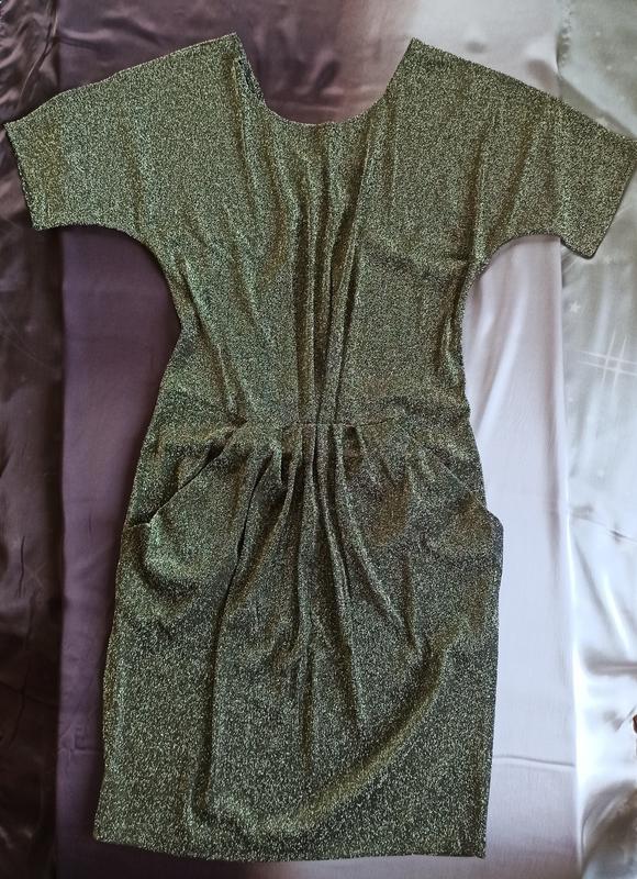 Золотаве плаття стретч з люрексом додасть сяйва твоєму образу. Плаття має 2 кармани. 46 розмір