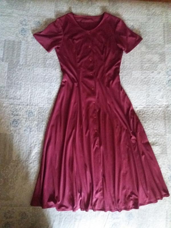 приталена сукня винного кольору (бордо+фіолет) довжина - 130см напівобхват грудей - 52см напівобхват талії - 45см напівобхват стегон - 56см довжина рукава - 23см тканина трикотаж