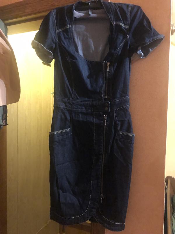 Плаття в гарному стані темно синього кольору з коротким рукавом на змійках зпереду.Довжина 95 см, плечі 34 см, в грудях 42 см в талії 33, в стегнах 40, довжина рукава 23 див. Рукав до низу завужений.