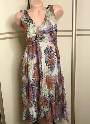 На підкладці. Верх- плєсірований шифон. Завишена талія!!!. .Довжина 105, від лінії під грудьми 73. ПОГ 45, по лінії під грудьми 40. Не тянеться. На бірці вказано 12-тий розмір, по факту 10.