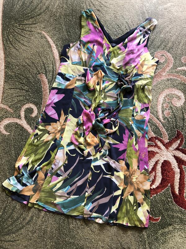 Довжина - 110 см. По грудях - 57 див. талія - 52 див. стегна. - 58 див. Довжинв від плечей до талії (до початку паска)-34 см. Ширина вшитого паска - 6 см. І прикріплений пояс, яким можна гарно підкреслити талію, обв'язаіши навколо теж 6 см. ширина